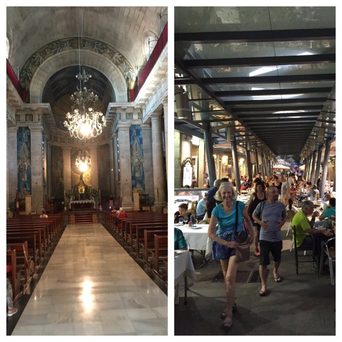 The photos below show the inside of the cathedral and the lively restaurant section where we went afterwards for a grilled fish dinner – quite a treat after the more basic fare of the last few days.