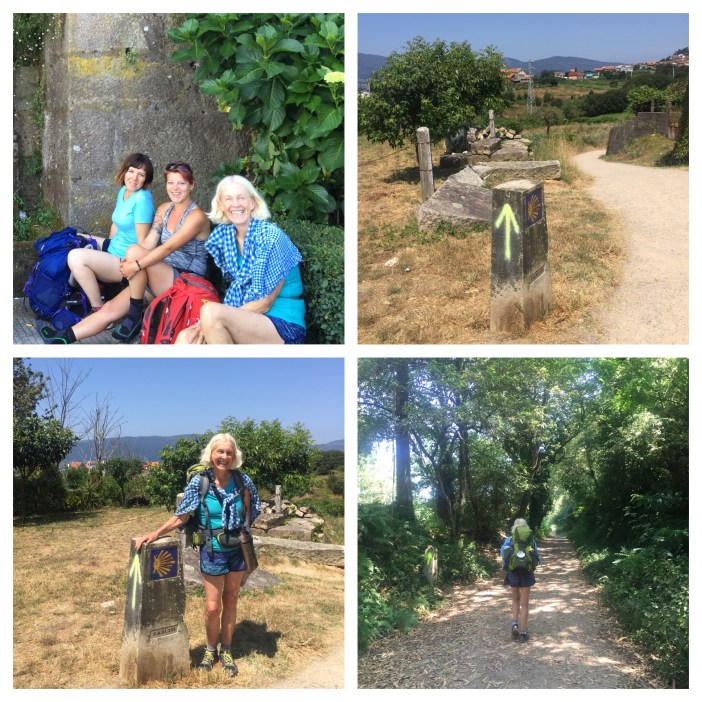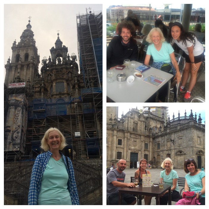 There were the workmen who gesticulated wildly at us when we were blithely forging ahead in the wrong direction. One time in particular – I was walking alone and had missed an arrow – a workman, driving past, stopped his van and gestured that I needed to go back – and watched to check I was going the right way – he was not convinced, so he parked his van, got out and walked me back to the turn I had missed!   Then there were the shopkeepers who slipped an extra morsel of bread or cake into my bag.  And, maybe most memorable, the myriads of people along the way who wished us “Bom Viaje”(in Portugal) or “Buen Camino”(in Spain) and really meant it.  And, very precious to me, were the conversations along the way with some of the people I passed.  In Spain I would understand about half of what they were saying.  In  Portugal, though I didn’t understand a word, I got the meaning. One lady in a little village stopped for a very animated conversation – the gist was “Well done you for walking to Santiago.  I will pray for you.  And please pray for me when you get there.” And other times, my “Bom Dia” would elicit a torrent of Portuguese. Again, I would get the basic idea – which, depending on the circumstance, could be translated as, “It’s very hot today, isn’t it” or “Carry on around the corner and then follow the arrows” or “Your friends are at the next cafe”. They knew I wished them well, I knew they wished me well, and we all left feeling happy.