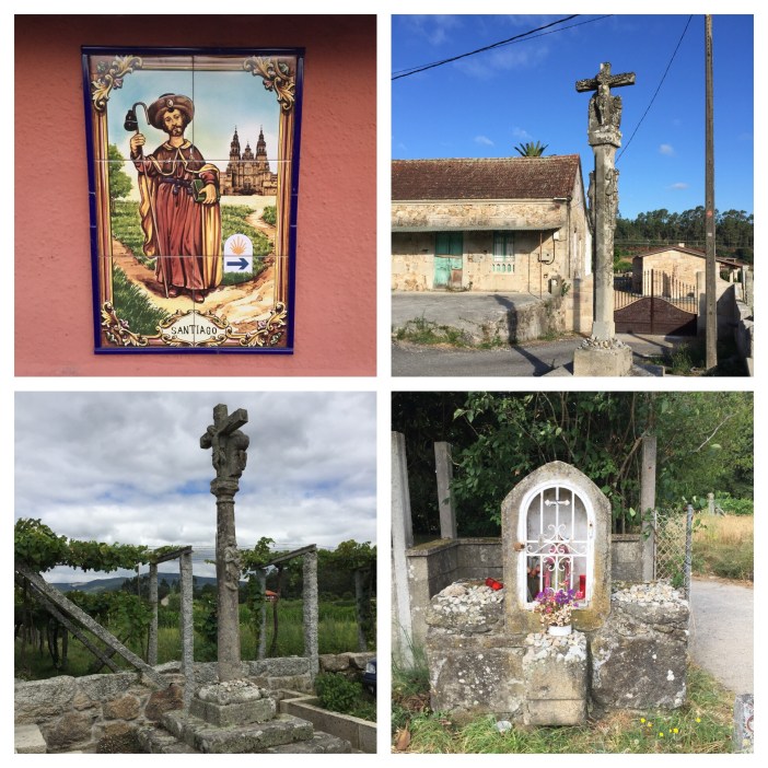 photos – a tiled picture of St. James and Santiago Cathedral, two roadside crosses and a shrine to Mary, the mother of Jesus.