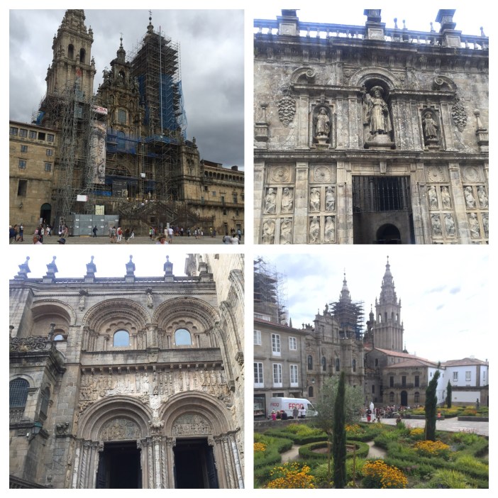 The Cathedral of Santiago de Compostela, from front and back and showing close up of two of the entrances. (The front loses something in translation because of the scaffolding)