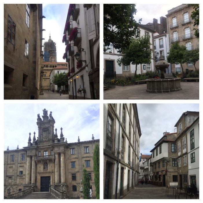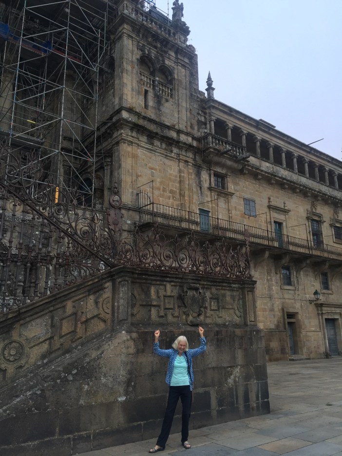I must confess that when I arrived in Santiago I was almost in tears. I didn’t know where I was going to stay, I didn’t know where the pilgrim office was and was too tired to find out and the cathedral was too full of tourists to provide any solace.  I was rescued by a kind lady serving at the souvenir shop – who gave me an address and phone number, drew on my map how to get there – and told me that I would find a place that was happy and clean – and would cost 15 euros for a single room. If it was a happy place I was on board!  I found the place, was let in by the friendly landlady, and was back to my routine – collapse on the bed for an hour and a half, take a shower and then venture out to find a cafe and explore the town – my world was set to rights again!