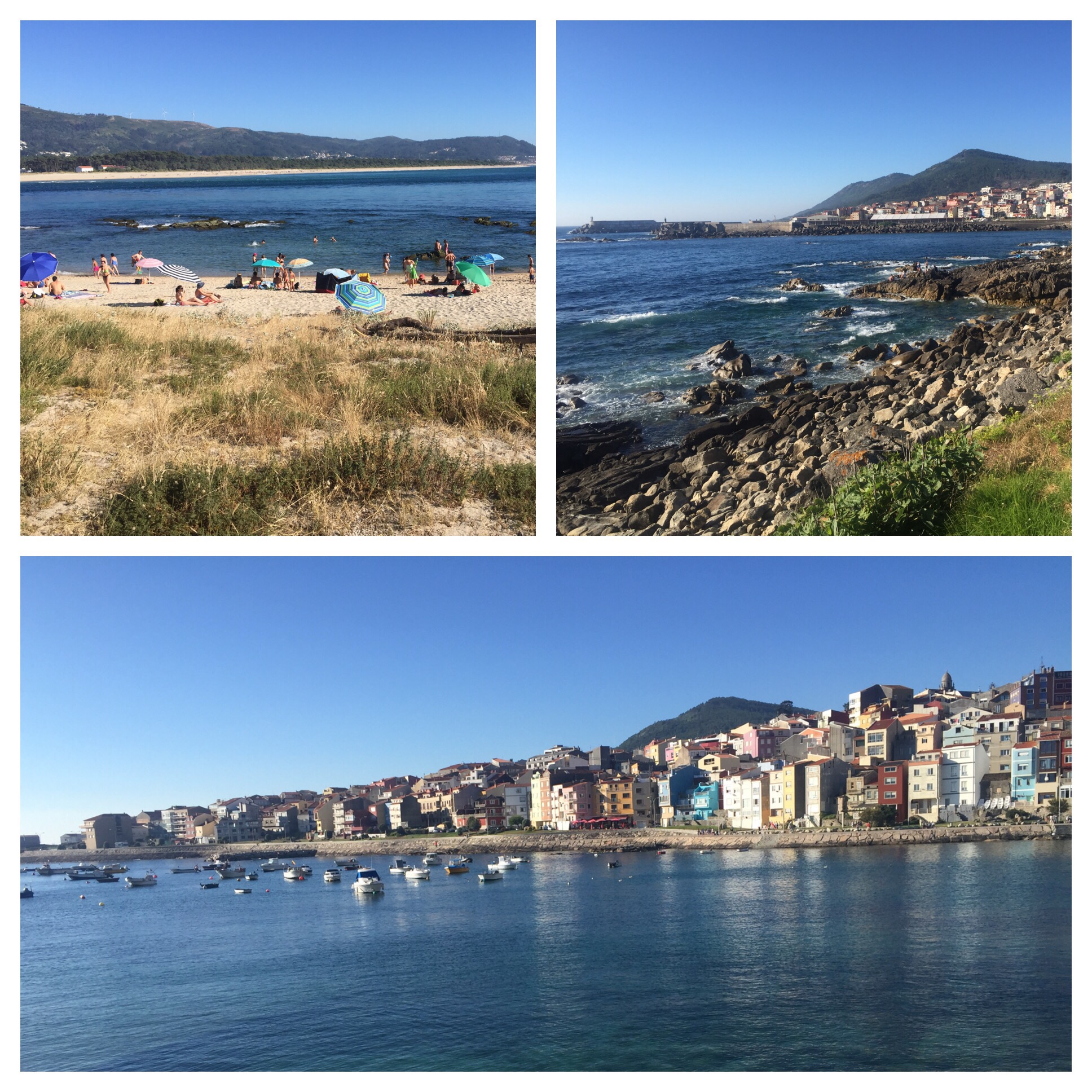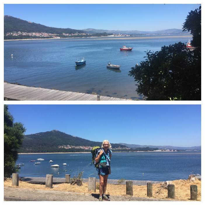 We were deposited somewhat unceremoniously on a Spanish beach – and walked along the coast to A Guarda where there was an albergue. (Photos – The Spanish beach where we landed, looking back at Portugal, the rocky coastline with A Guarda in the distance, the town seen from across the harbor as we entered.)