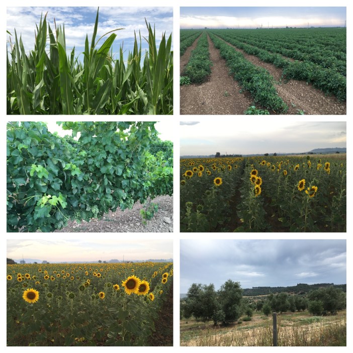 Today the way was mainly through pine and eucalyptus woods and olive groves. The yellow arrows to Santiago were now more frequent and we also saw blue arrows in the opposite direction, showing the way to Fatima. The heat was intense. Johanna (from Austria) – described the wind as feeling like a hairdryer.